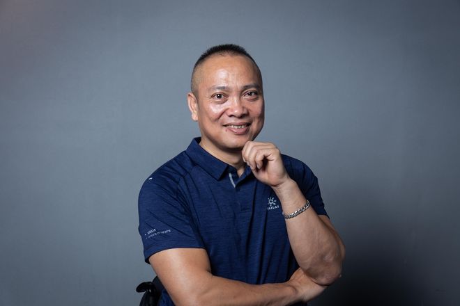 2013年,钟承湛在一次滑雪中意外受伤而高位截瘫,后来他成了中国第一个学会坐式滑雪的人。这位“硬汉”至今经常自己开车,那辆改装过的越野车方便他独来独往。去年几次出差欧洲,钟承湛也要顺道“偷偷玩一下”,去滑雪、自驾旅行。